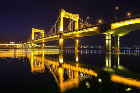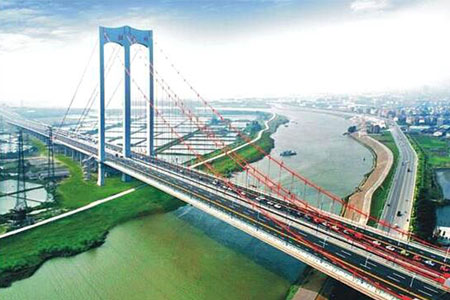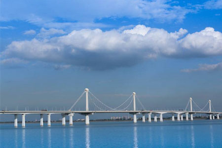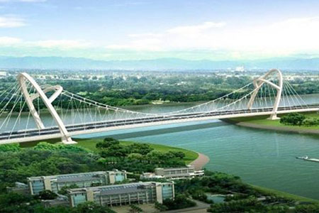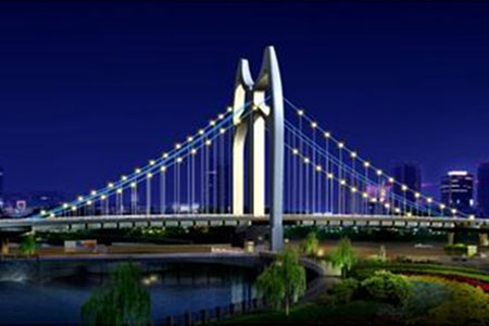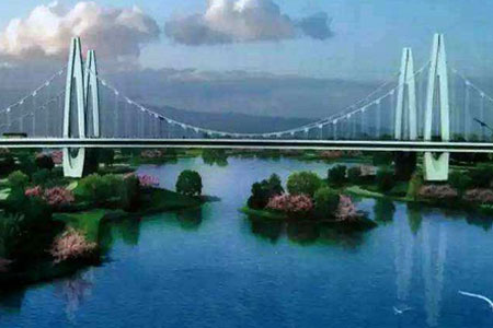 杭州江东大桥又称钱江九桥,大桥全长4332.5米,大桥设计新颖,其中三跨空间缆自...