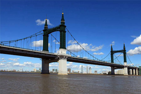 卡塔尔鲁赛尔城第8、9号桥是半自锚式悬索桥,总长度分别为204m和186m。...