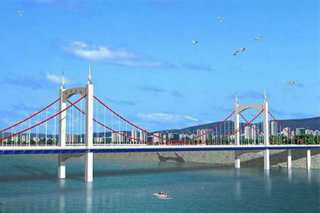 吉林雾凇大桥是双塔自锚式混凝土悬索桥,全长991米、宽32米,自锚式混凝土...
