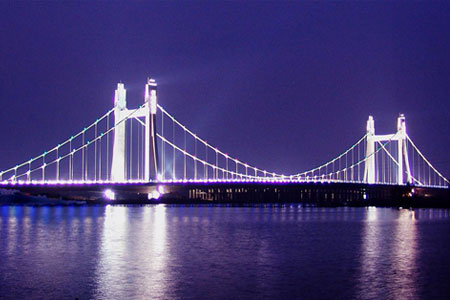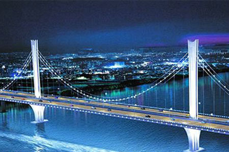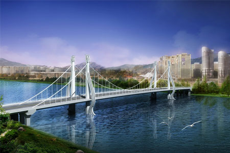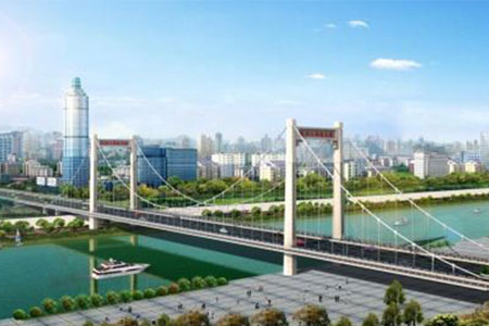 邵阳桂花大桥采用双塔三跨自锚式悬索结构,主跨120米,全长541米,宽33.8米...