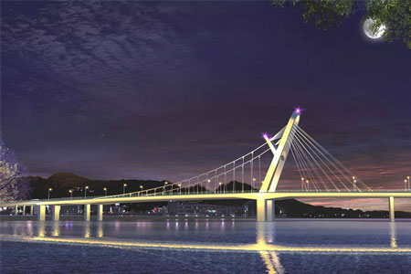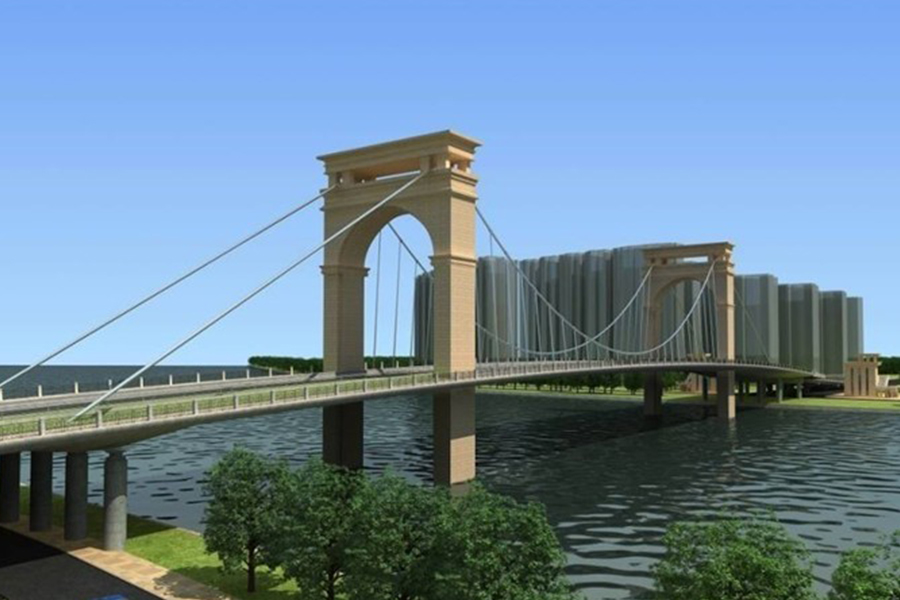 Twin-tower self-anchored suspension bridge,Main span 150m